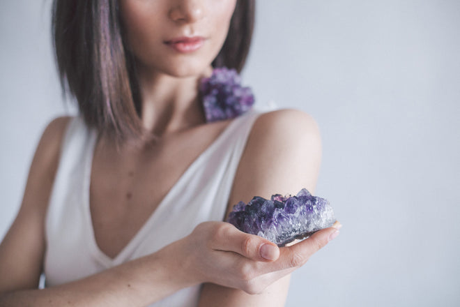 Amethyst can help to oxygenate the skin and brighten it, when used as part of a regular skincare routine. Kristals has a 3-step treatment product line that, when combined with gemstones, can energize and detoxify the skin, leaving brighter, healthier skin behind.